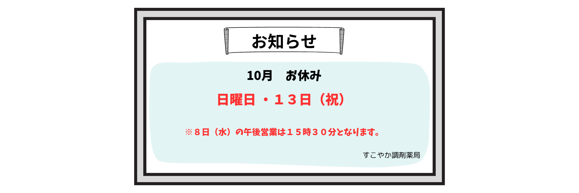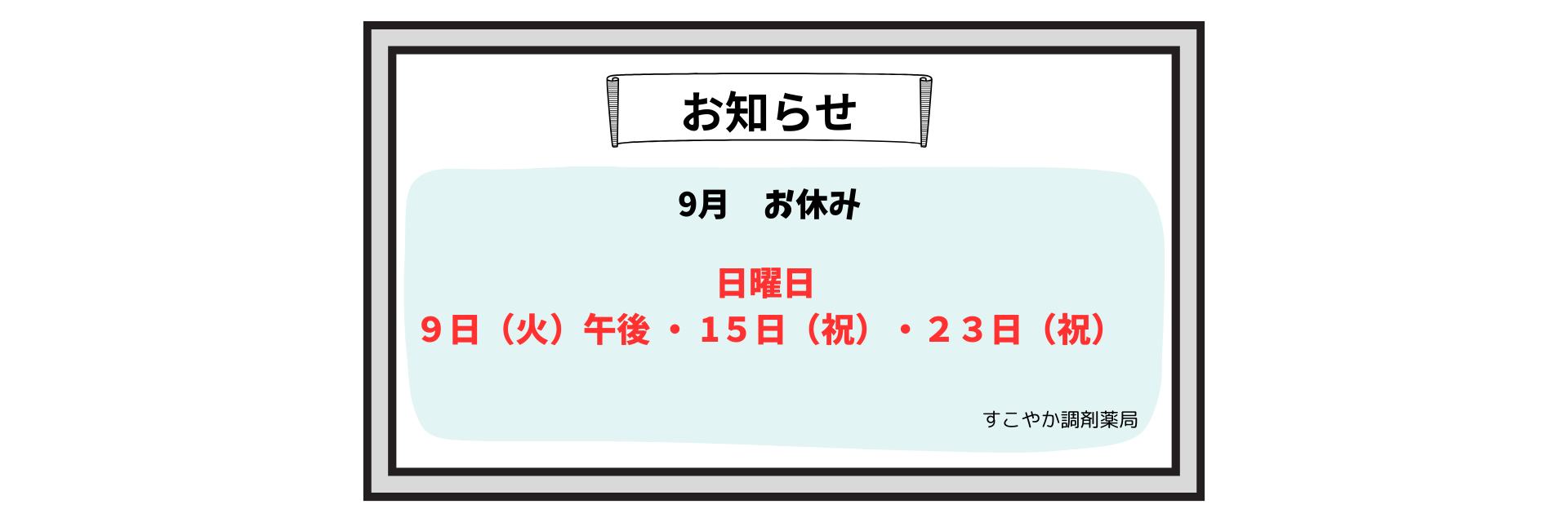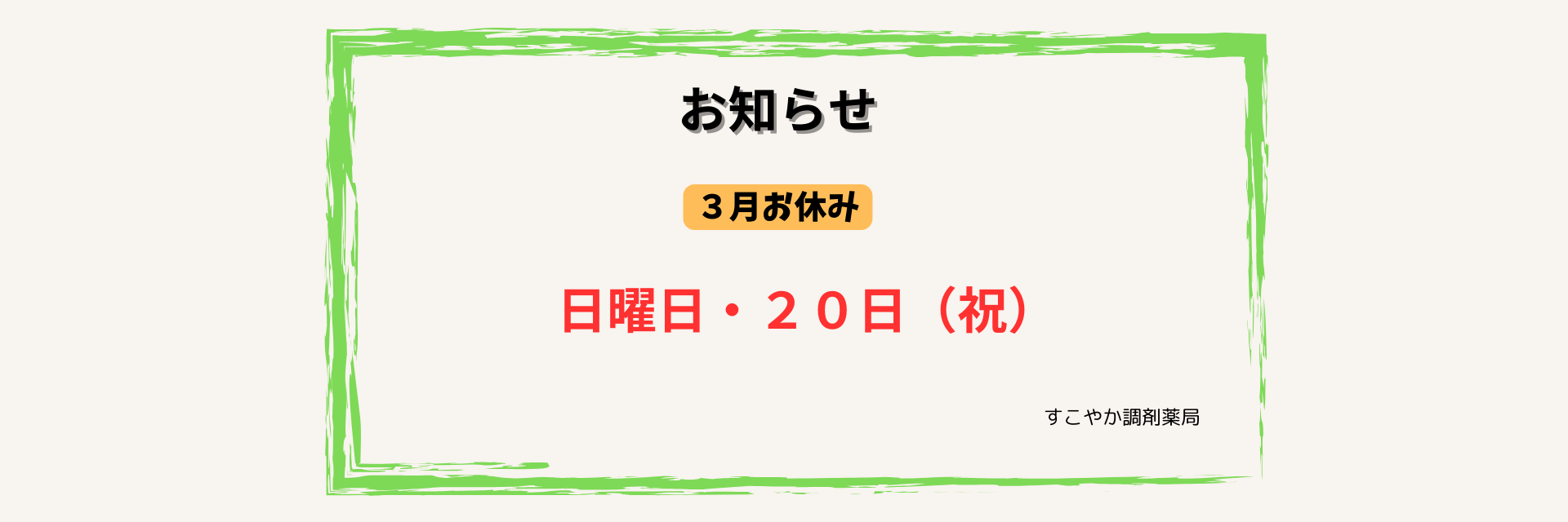 :3月 / お休み- / お知らせ. / すこやか調剤薬局