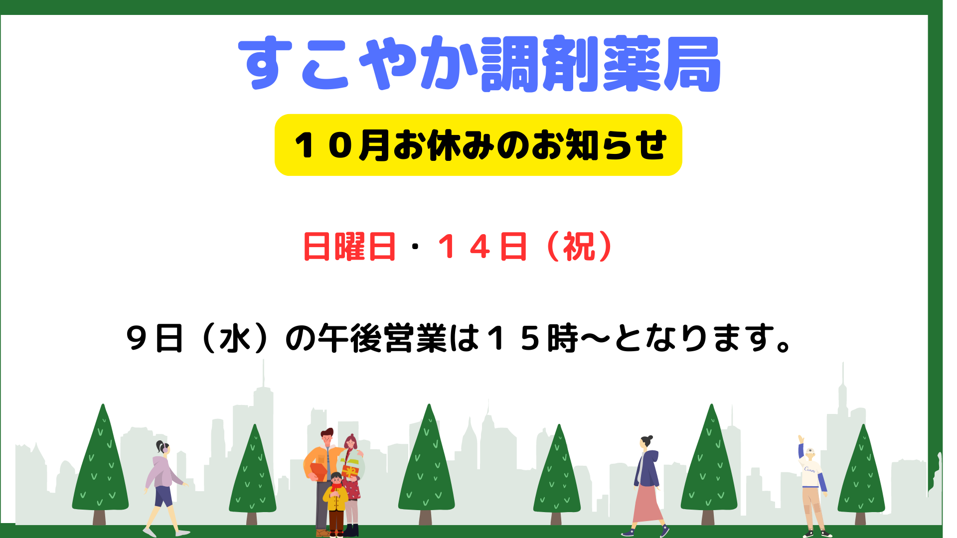 10月お休みのお知らせです。