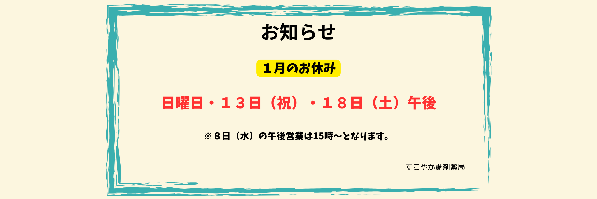 :1月 / お休み- / お知らせ.